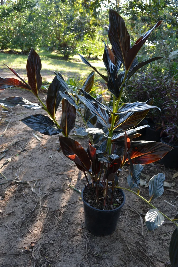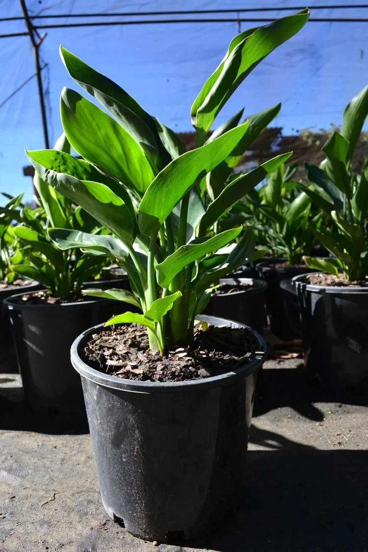Typically growing to around 1.5-2 m high and 0.8–1 m wide, it has a moderate growth rate and adds a strong tropical or architectural look to gardens and containers.